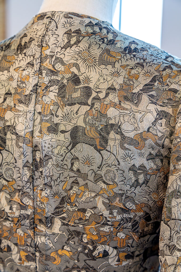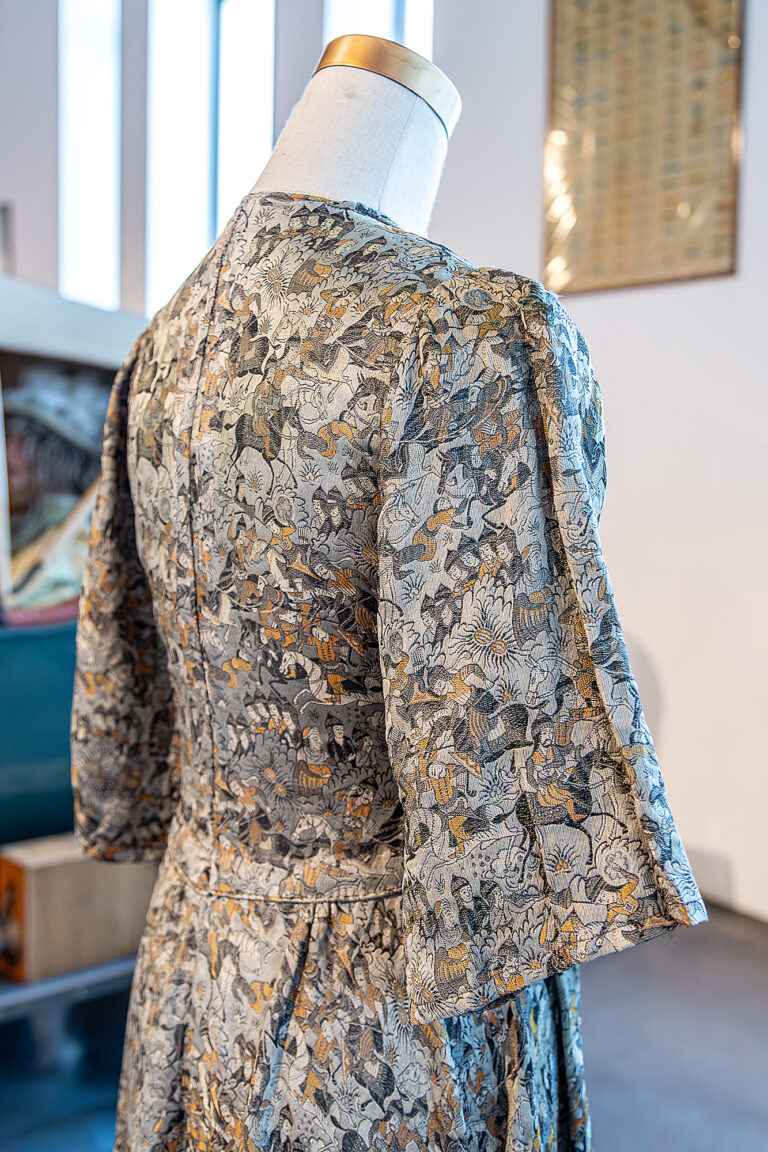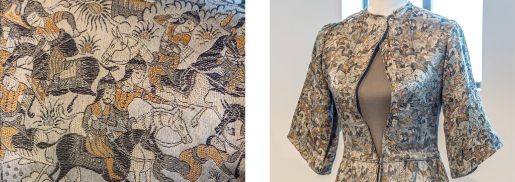 The fabric used to make this piece was designed by Raoul Dufy for Bianchini Ferier – ‘Chasse Persane’, 1921.